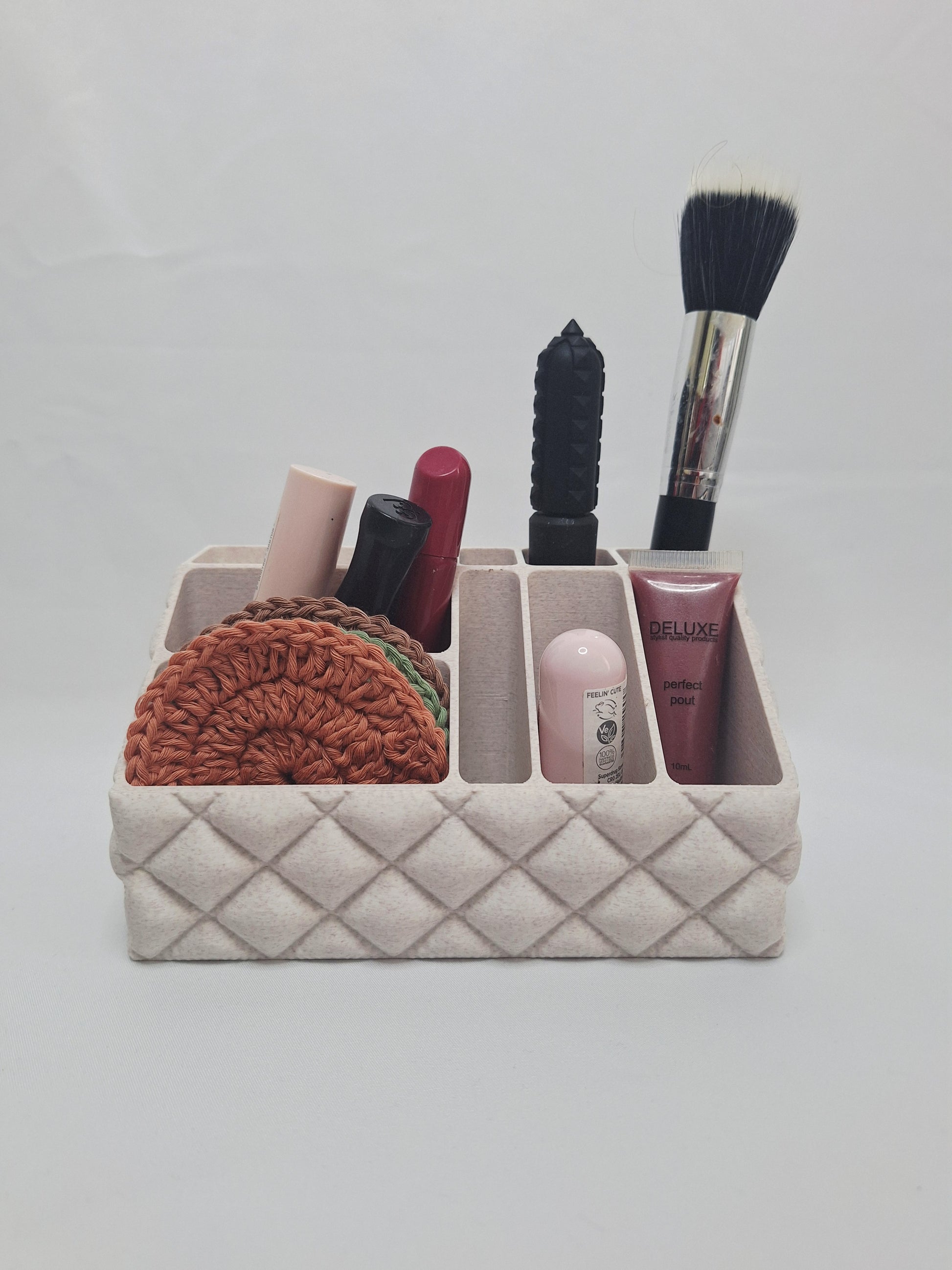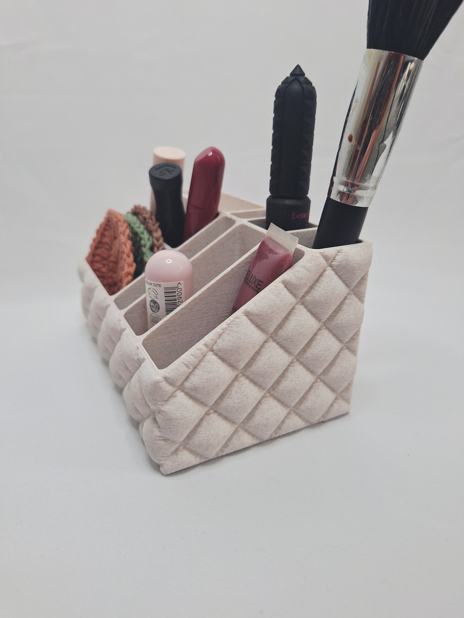 Contemporary Quilted Makeup Holder β 3D Printed in PLA with Cedar Speckle β¨