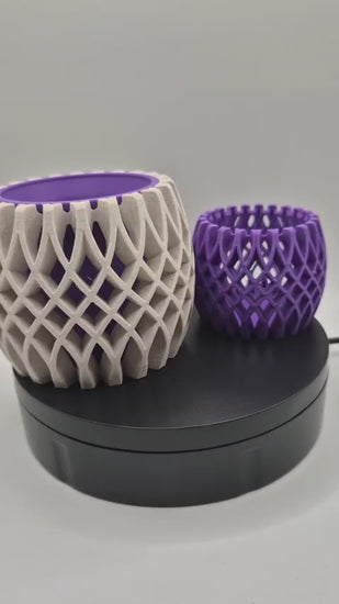 3D Printed Plant Pot & Tea Light Set | Marble Plum Lattice Design UK